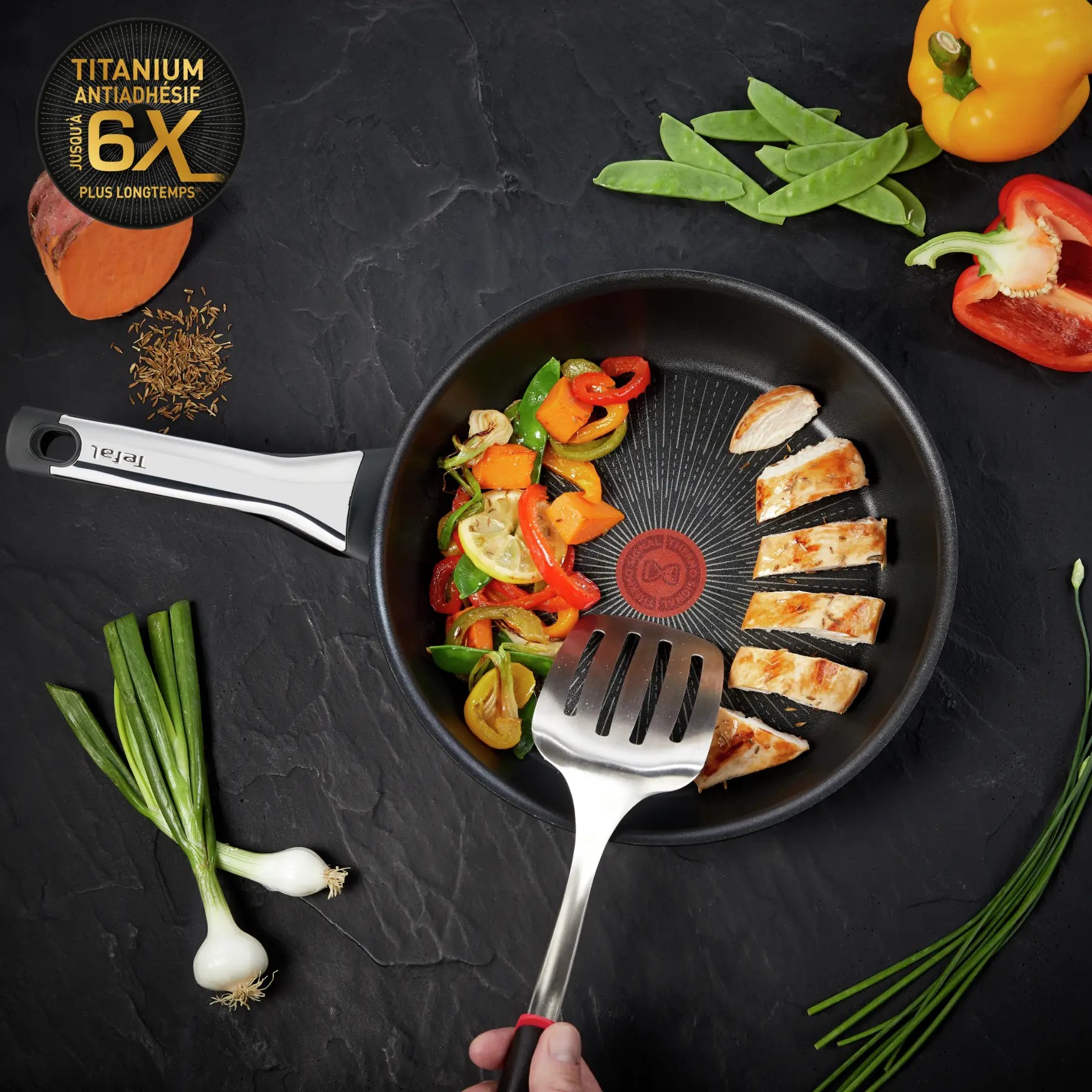 Takket være pannens sterke belegg kan du bruke redskaper i stål uten at det tar skade, slik at kjøkkenutstyret beholder den gode sliteevnen over tid. Når maten ikke brenner seg fast, får du enkelt den perfekte stekeskorpen og kan i tillegg lage sunn mat uten olje og smør. Med Tefal Excellence lykkes du lettere på kjøkkenet, både med små og store måltider, til hverdag og fest.