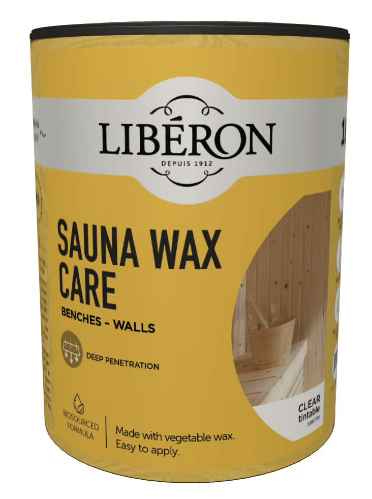 Sauna Wax Care pleier, beskytter og dekorerer interiøret i badstuer (benker & vegger) og all innvendig treverk. Voksen er ikke klebrig, gir en vakker silkematt finish og poleres lett.