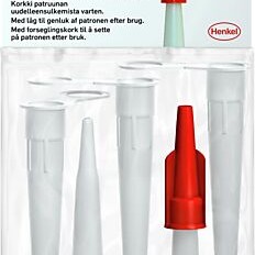 Pattex patronspisser er en pakke med 5 ekstra patronspisser, med skrukork for enkel lukking.