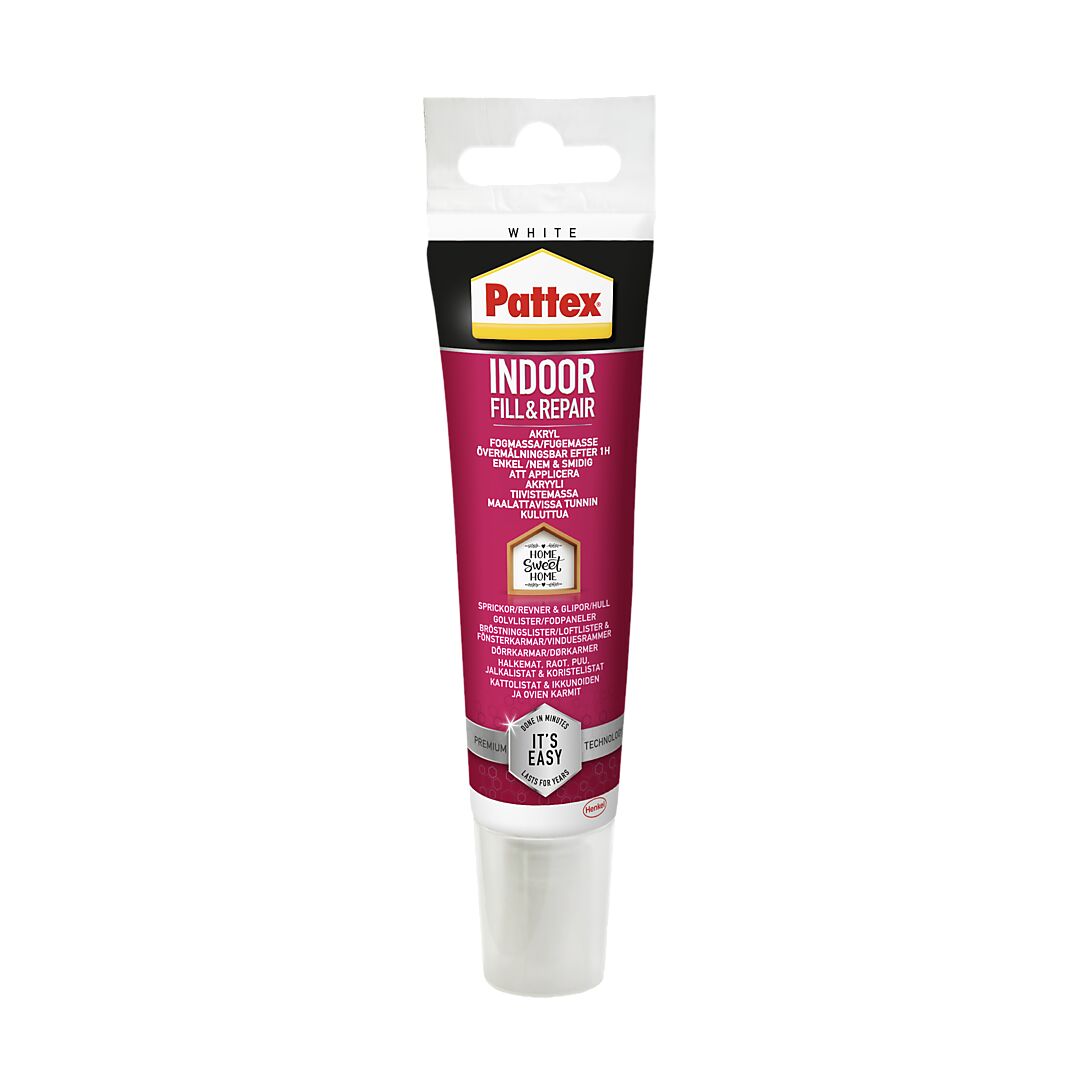 Pattex elastisk malingsfugemasse med meget god vedheft, uten løsemidler. Har meget god vedheft på både faste og porøse overflater og fester på de fleste materialer, som gips, betong, fliser og tre. Kan brukes både inne og ute. Ellers se info om tube.